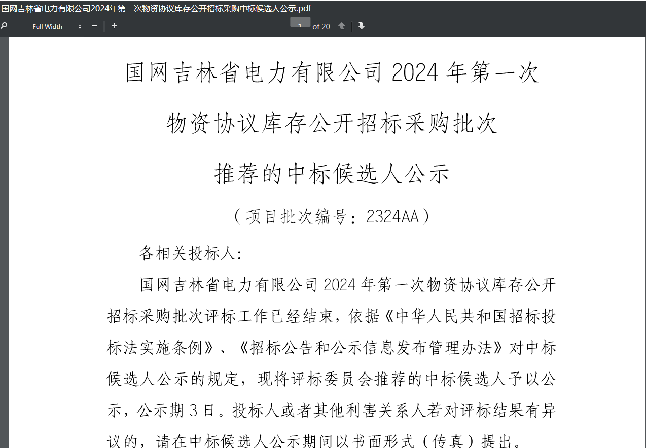 恭喜我公司中標國網(wǎng)吉林省電力有限公司2024年第Yi次物資協(xié)議庫存公開招標采購項目